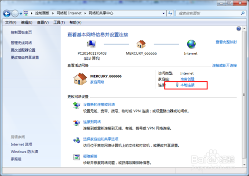 进入“网络和共享中心”后,我们再点击“本地连接”进入“本地连接 状态”对话框: