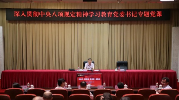 近日,行政学院召开深入贯彻中央八项规定精神学习教育专题党课暨年中工作推进会。会议以“多会合一”形式举行,统筹召开专题党课交流会、年中工作推进会、学习教育推进会与干部学习培训会,旨在持续推动学习教育走深走实,以优良作风奋力推进学院高质量发展。教育部直属机关党建工作联络员刘炳来到会指导。学院全体党员干部、教职工参加会议。