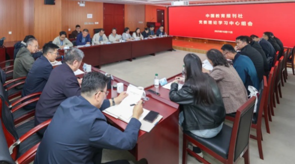 近日,中国教育报刊社党委理论学习中心组召开会议,集体学习《习近平谈治国理政》第五卷,贯通学习习近平同志《论坚持全面深化改革》第一卷、第二卷,并结合推进主流教育智媒集团建设、服务建设教育强国和教育综合改革实际工作开展交流研讨。